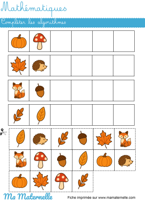 Les exercices de grande section de maternelle feront place belle aux mathématiques et en particulier à la numération. Par exemple, l’enfant devra compter puis écrire le nombre ou encore déterminer sur une image le nombre d’occurrences d’un élément. De même, il sera amené à faire des comparaisons. L’algorithmique sera également développée en y ajoutant quelques nouvelles difficultés. A la fin de l’année, l’enfant devra être en mesure de résoudre des problèmes simples ainsi qu’effectuer des additions et soustractions.