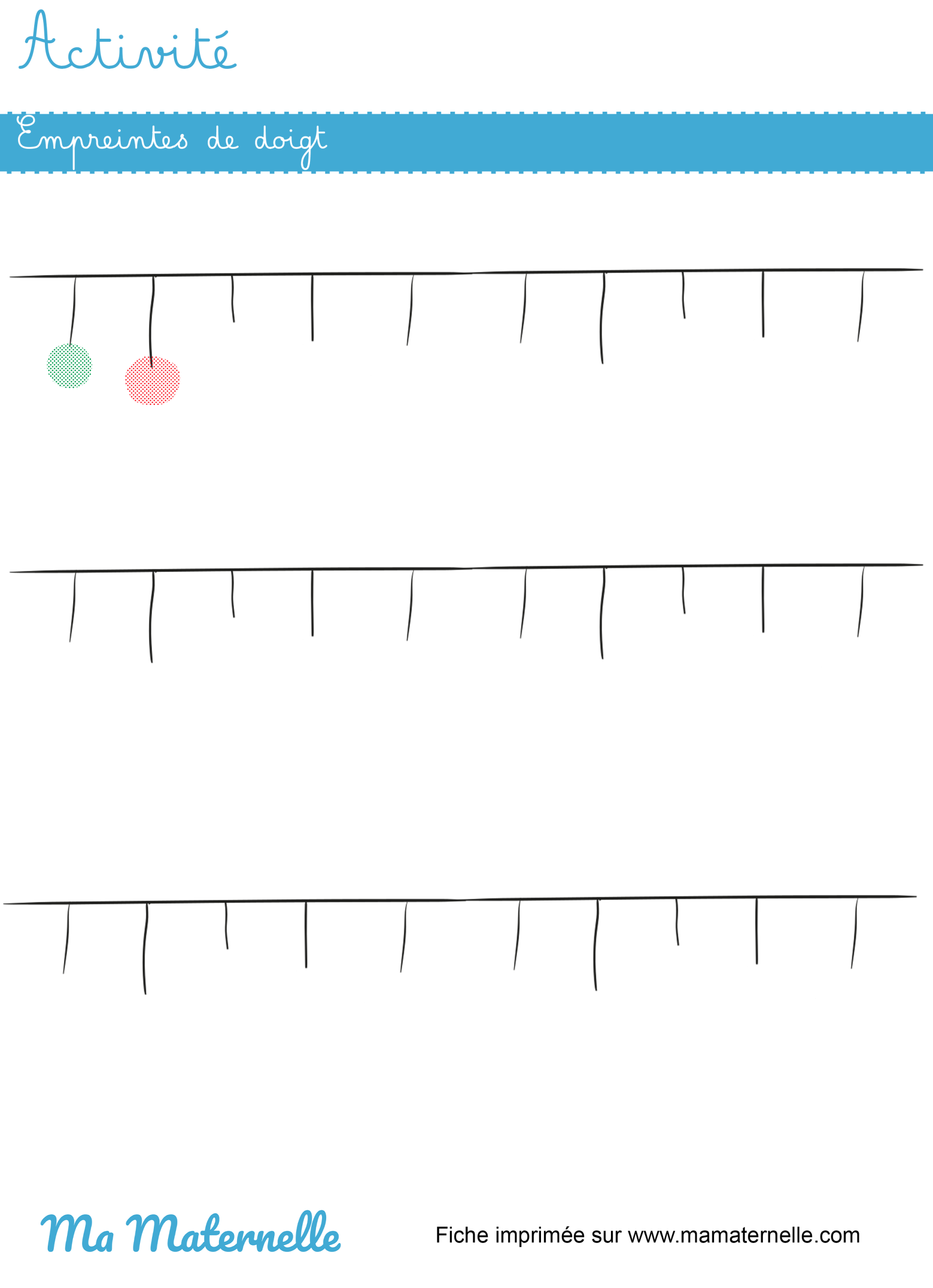 Activité : empreintes de doigt Par JulieLe 13 décembre 2025Dans Activités, Autres activitésLaisser un commentaire sur Activité : empreintes de doigt Empreintes de doigt sur les guirlandes de noël. ↓ Télécharger le fichier Partager : 📎 Fiches similaires : Lettres : relier chaque image à sa lettre Lettres : découper, placer, repasser Activité : dessiner mes vacances de Noël Discrimination visuelle : visualiser puis entourer