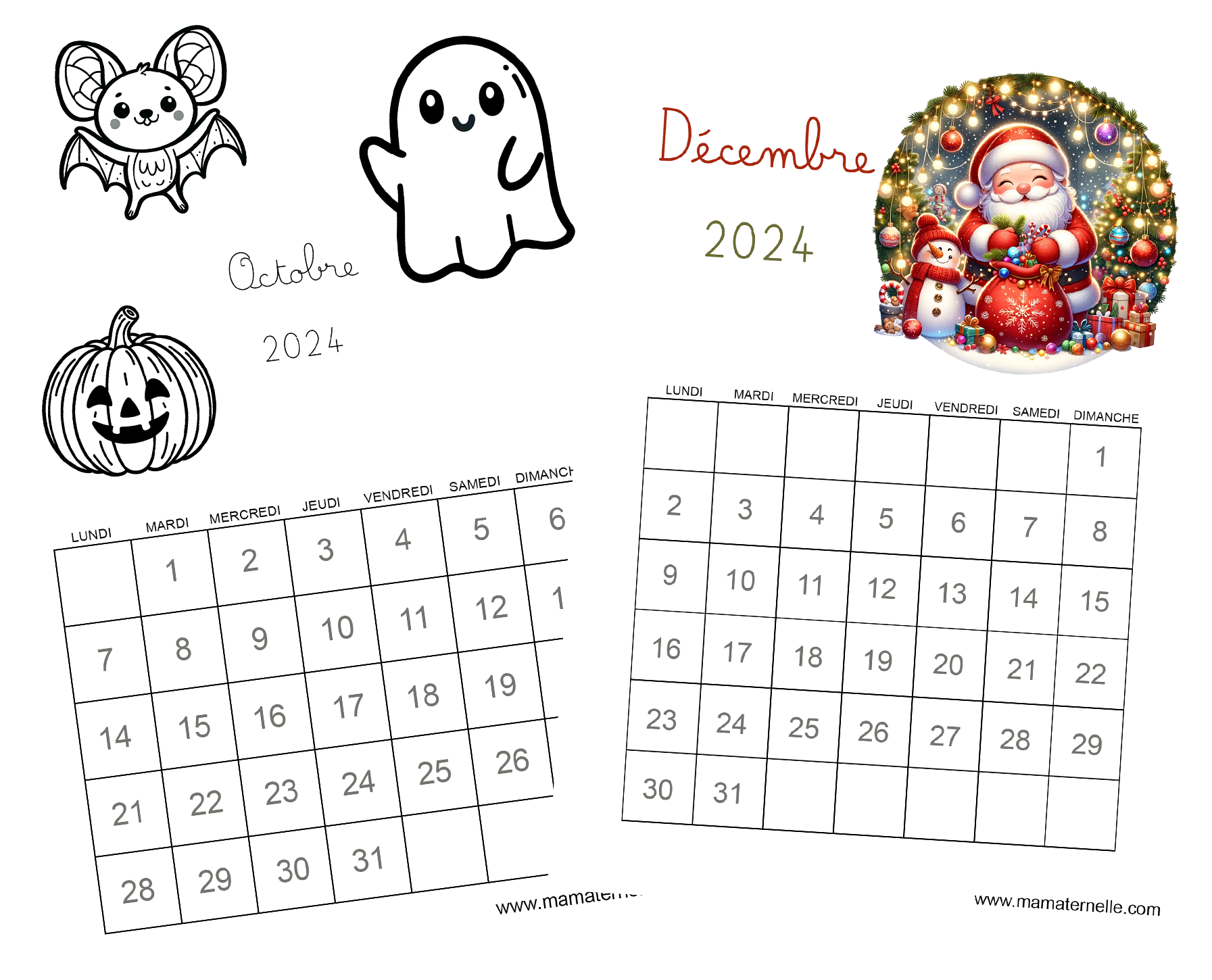 Dans un contexte de classe, le calendrier devient un outil de communication et d’échange. Les enfants enrichissent leur vocabulaire en parlant des jours de la semaine, des mois, ou encore des événements à venir. Nous proposons un thème pour chaque mois, ainsi en octobre les enfants découvriront une image ou un coloriage en rapport avec Halloween. Parce qu’effectivement nous avons deux versions de calendriers : images ou coloriages. Ainsi chacun fait son choix en fonction de ses préférences.