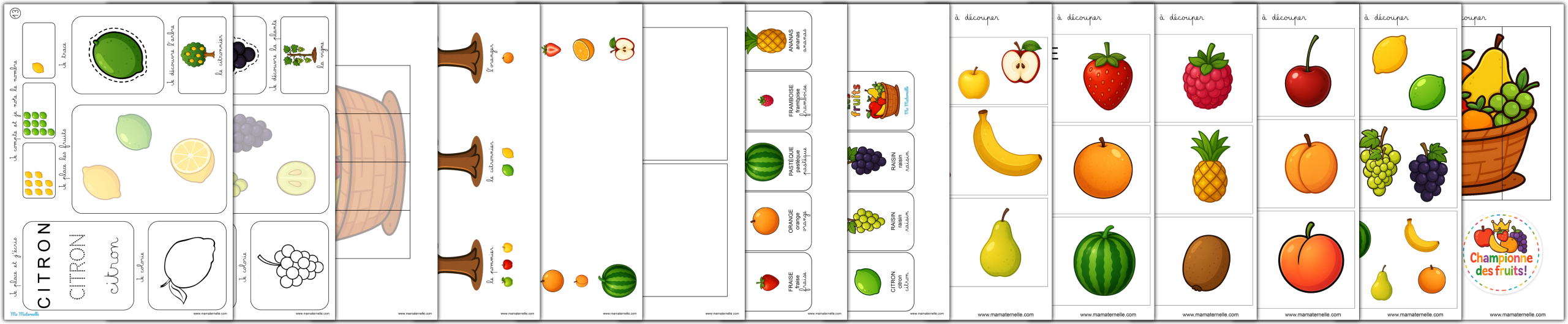 - 🧺 14 pages avec différents fruits