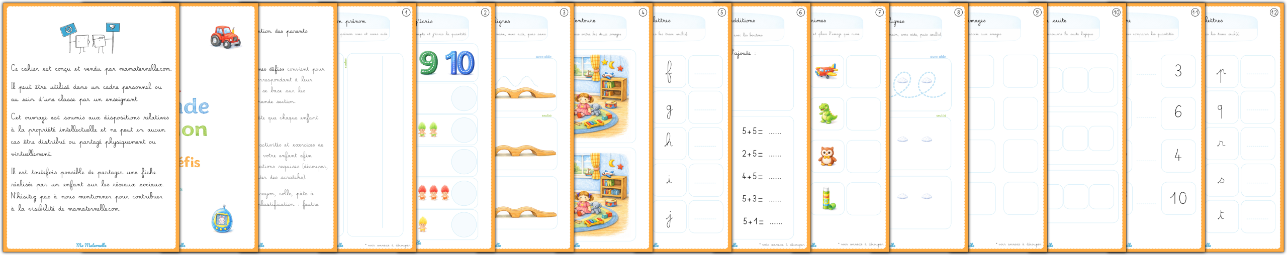 Il propose 24 pages d’activités variées, inspirées des apprentissages de fin de grande section de maternelle.