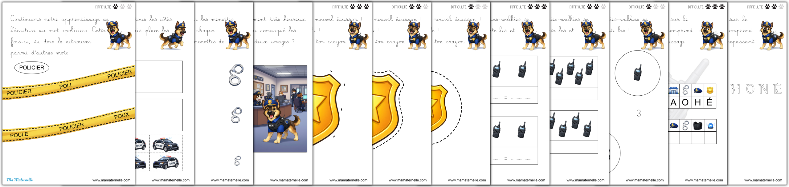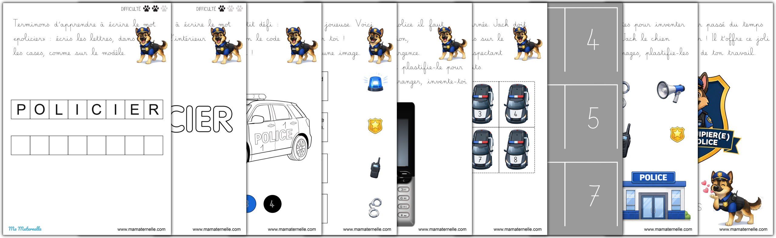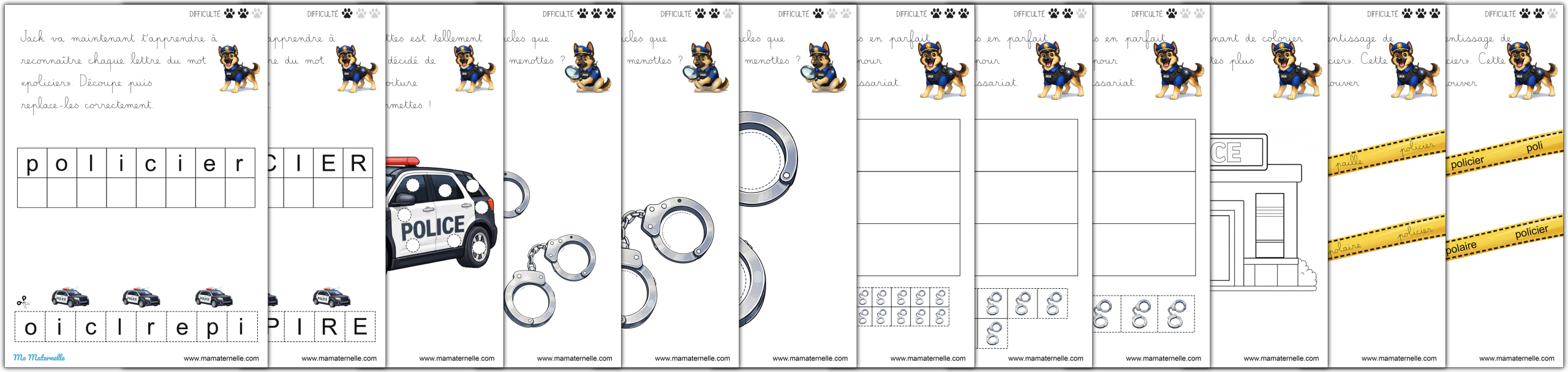 Des cartes de vocabulaire autour du thème des policiers. 👮♂️ Des exercices autour des lettres 🔤.