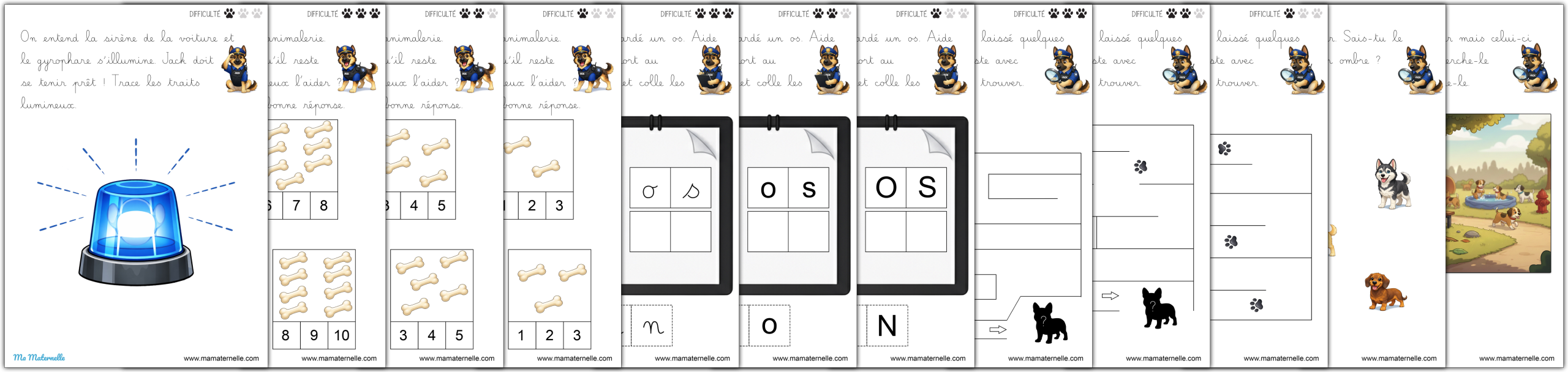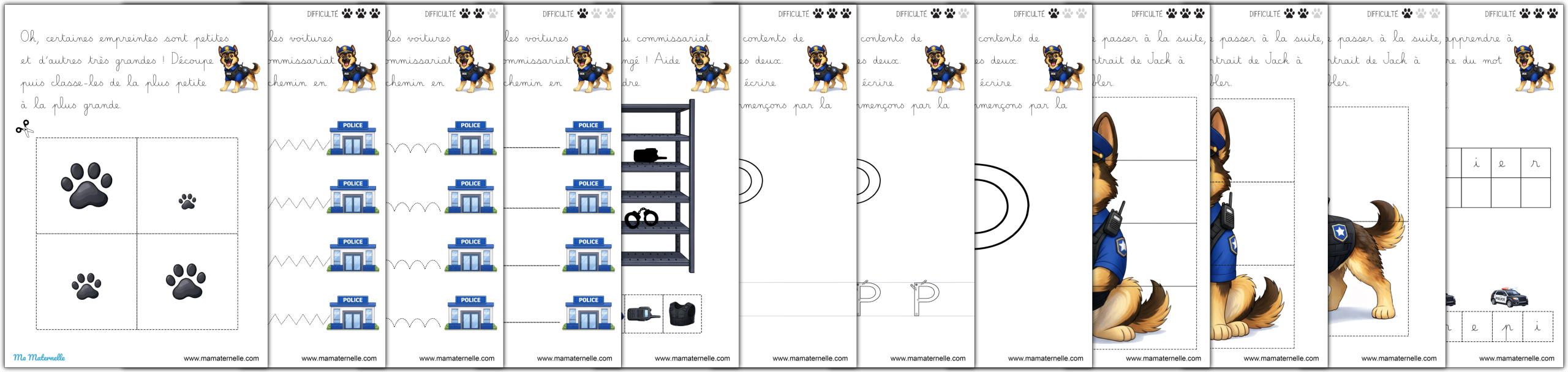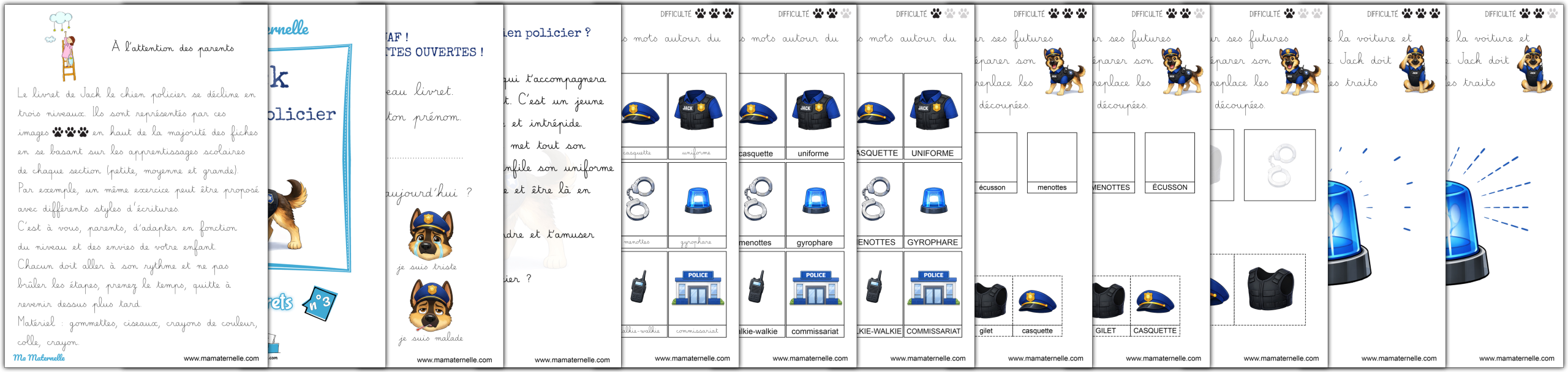 Des cartes de vocabulaire autour du thème des policiers. 👮♂️ Des exercices autour des lettres 🔤.