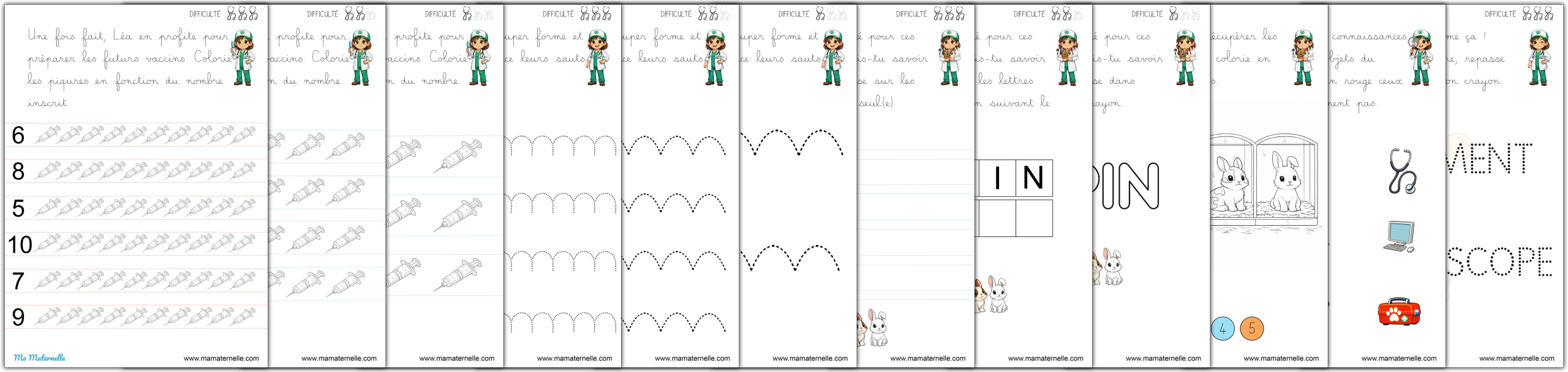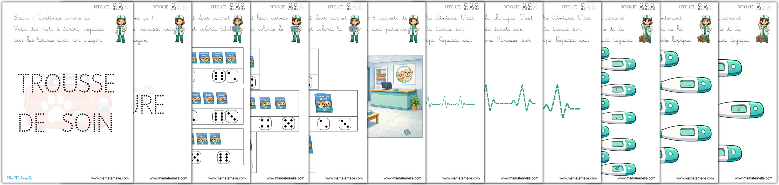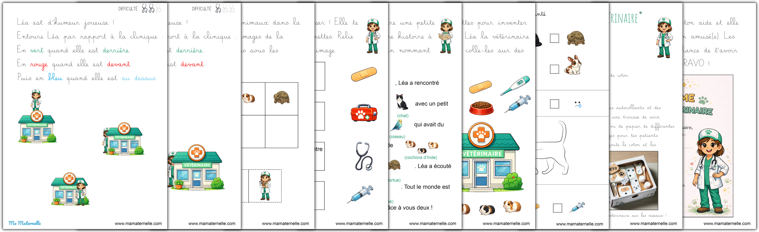 Des cartes de vocabulaire autour du thème des vétérinaires. 🩺 Des exercices autour des lettres 🔤.
