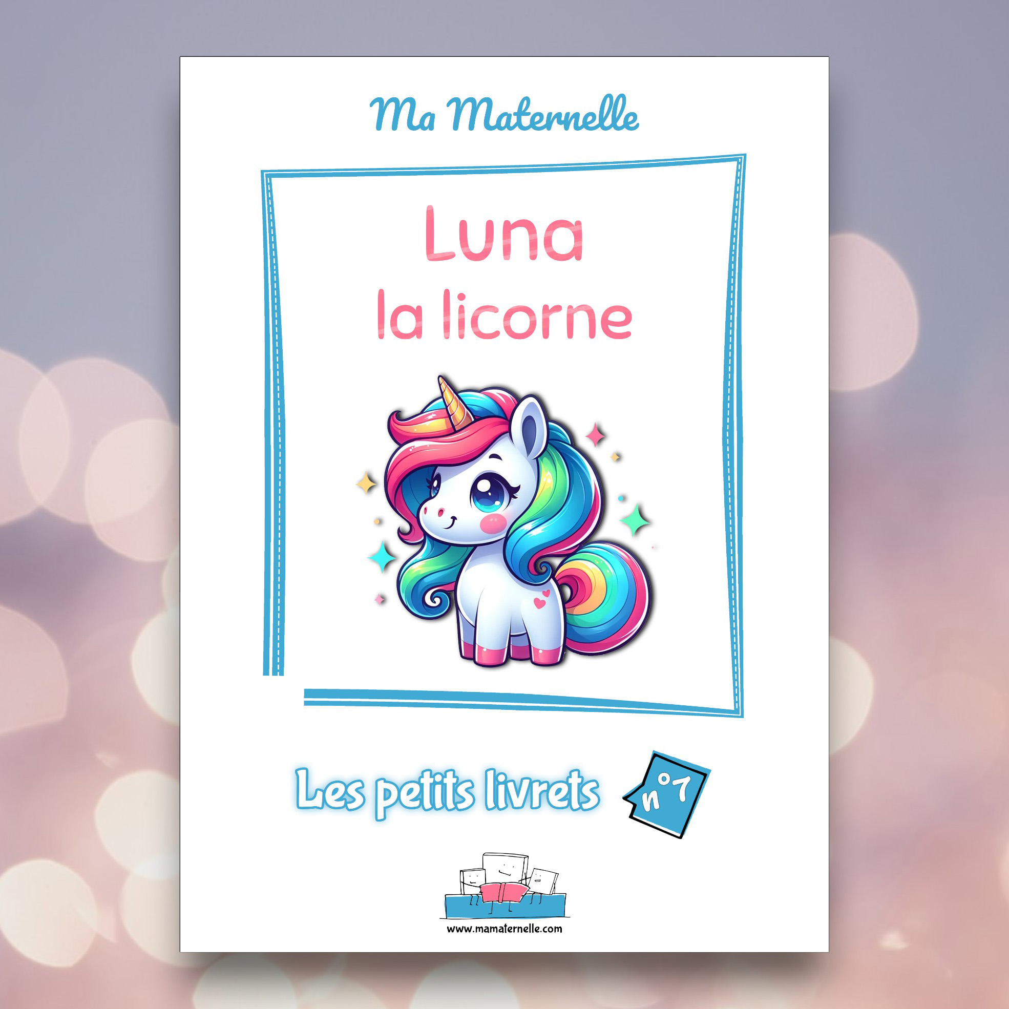 « Luna la licorne » est le septième numéro des petits livrets de Ma Maternelle. Cette série de livrets a pour objectif de faire travailler les enfants de maternelle de manière ludique, en gardant un fil rouge, représenté par le personnage principal qui est ici une jolie licorne. De cette manière, votre enfant pourra se sentir proche de ce petit compagnon et ainsi partager le travail avec lui.