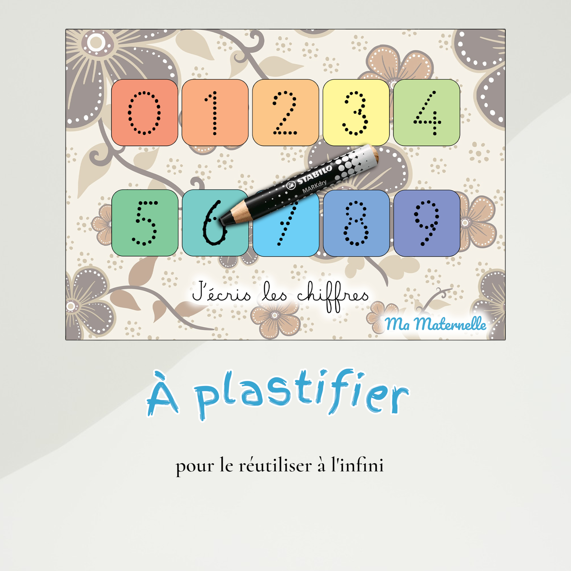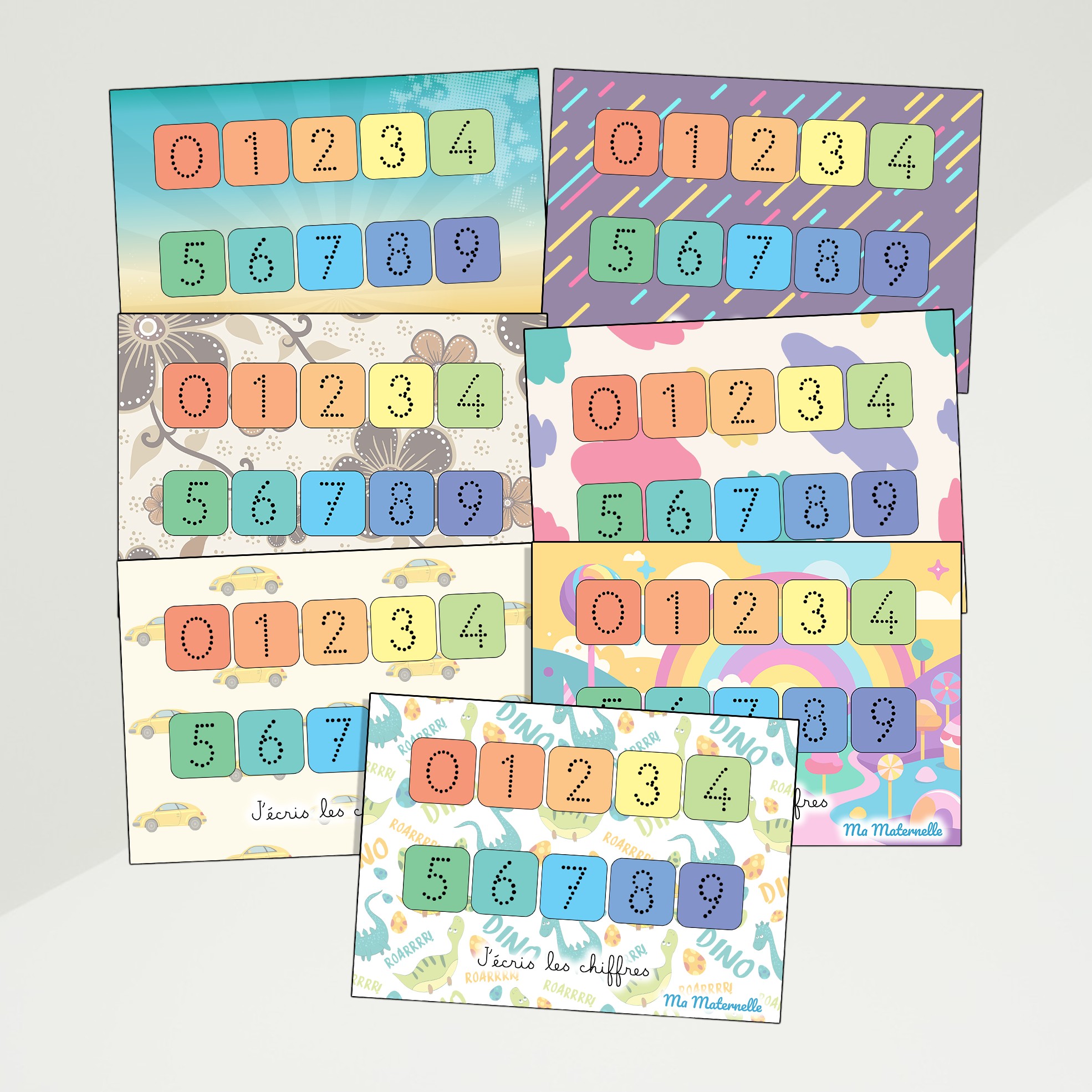 Aidez votre enfant à s’entraîner à écrire les chiffres à l’aide de cette fiche colorée et ludique. Chaque chiffre est composé de pointillés afin de permettre à l’enfant de repasser dessus avec son crayon et de développer sa motricité fine.