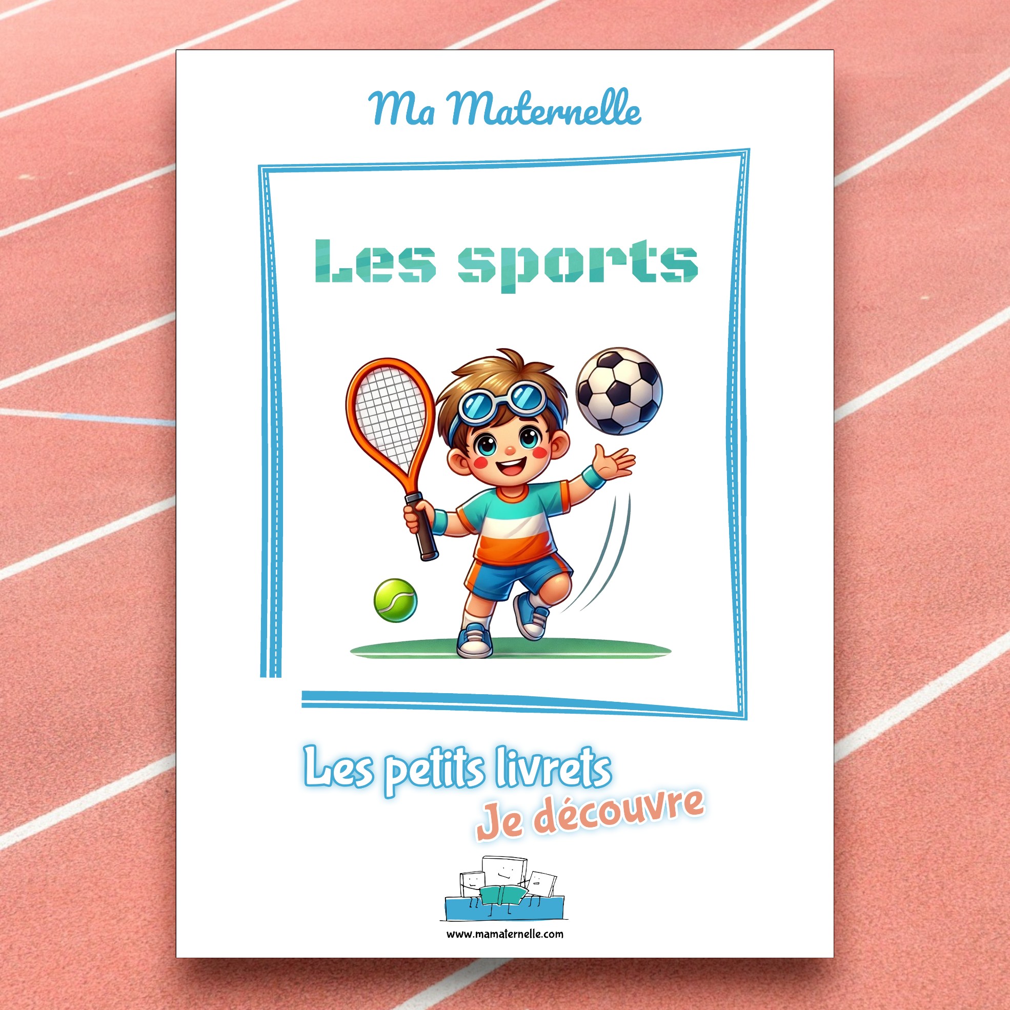 Deux ou trois images seront présentées par sport (lieu, accessoires…) afin de permettre une meilleure visualisation de chacun. L’enfant y trouvera également une fiche de graphismes, de coloriage et d’écriture.