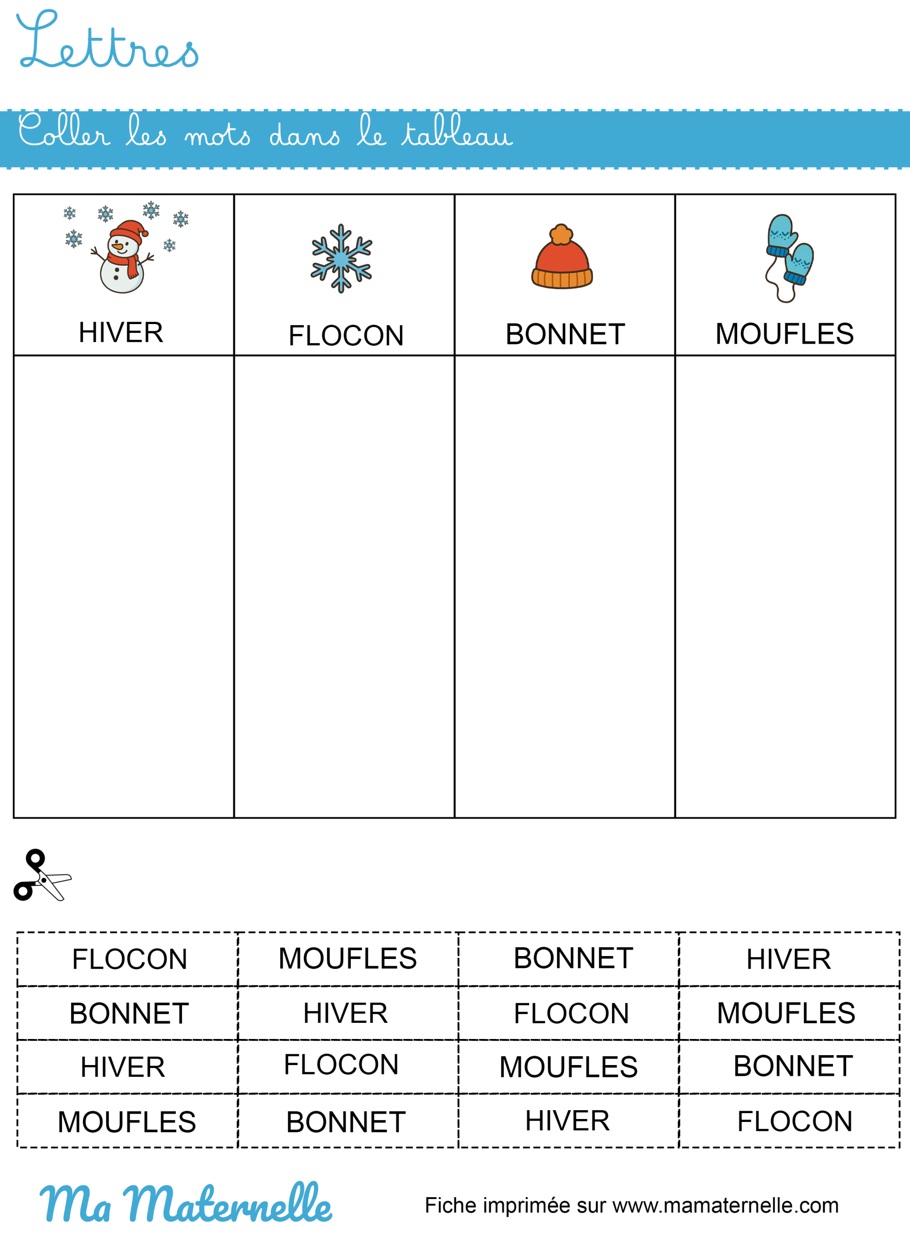 Nos exercices de maternelle sur l’hiver