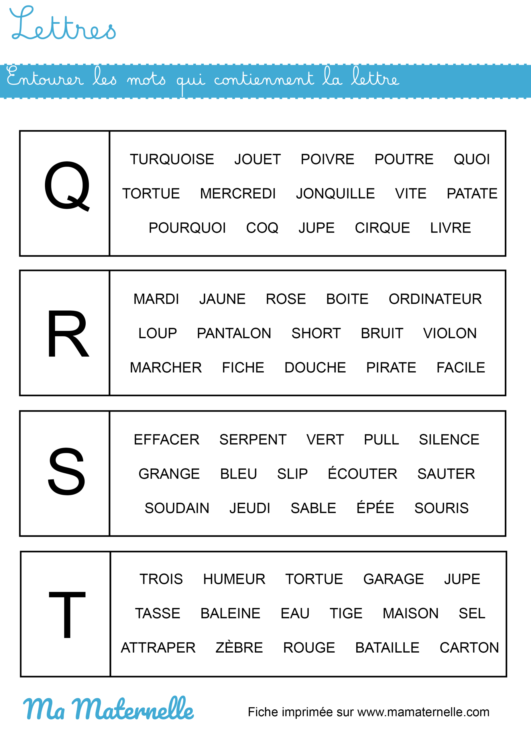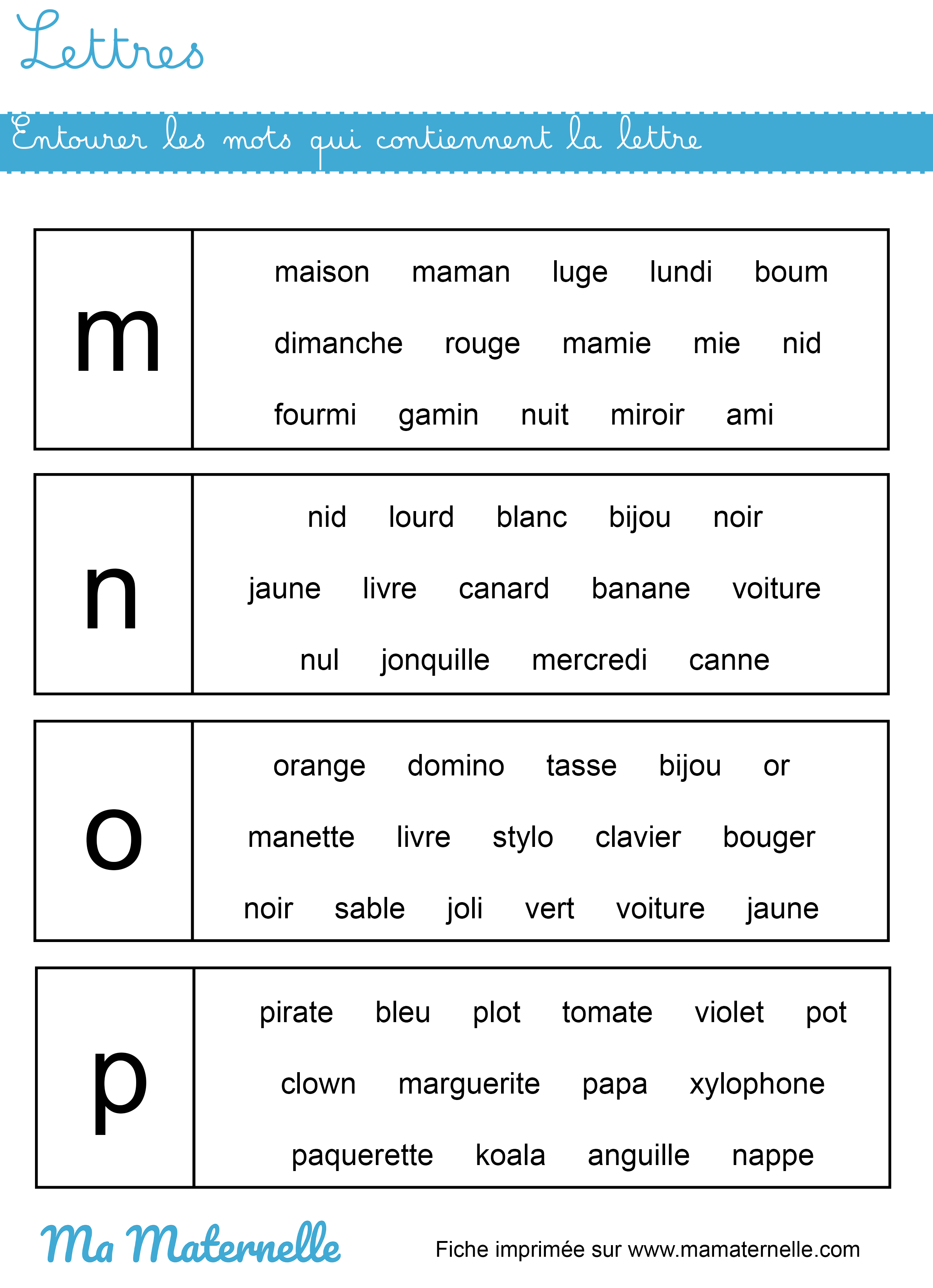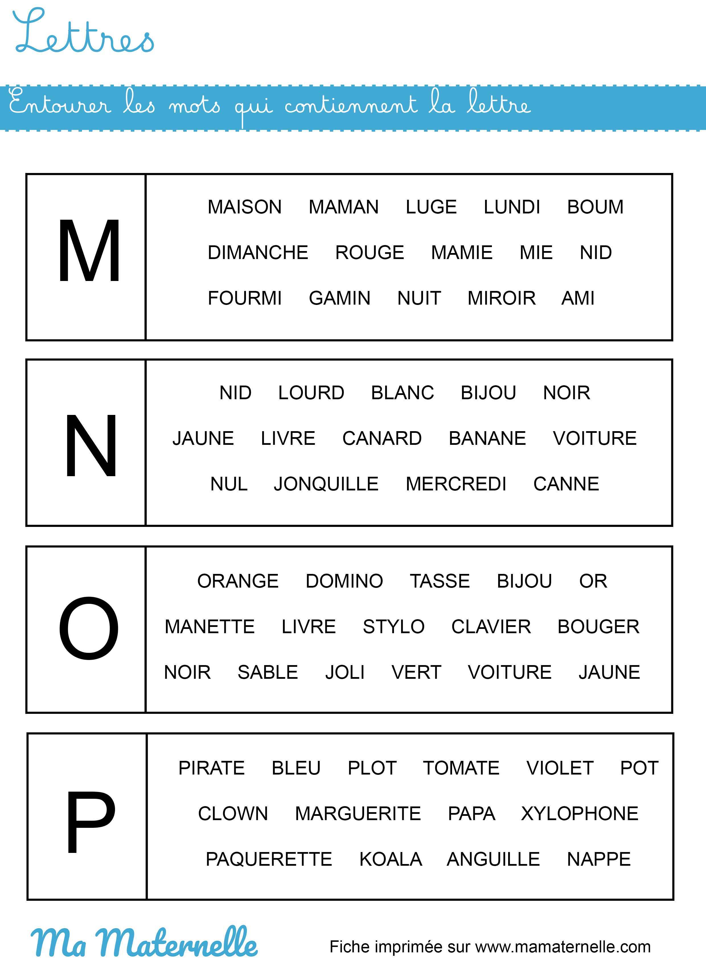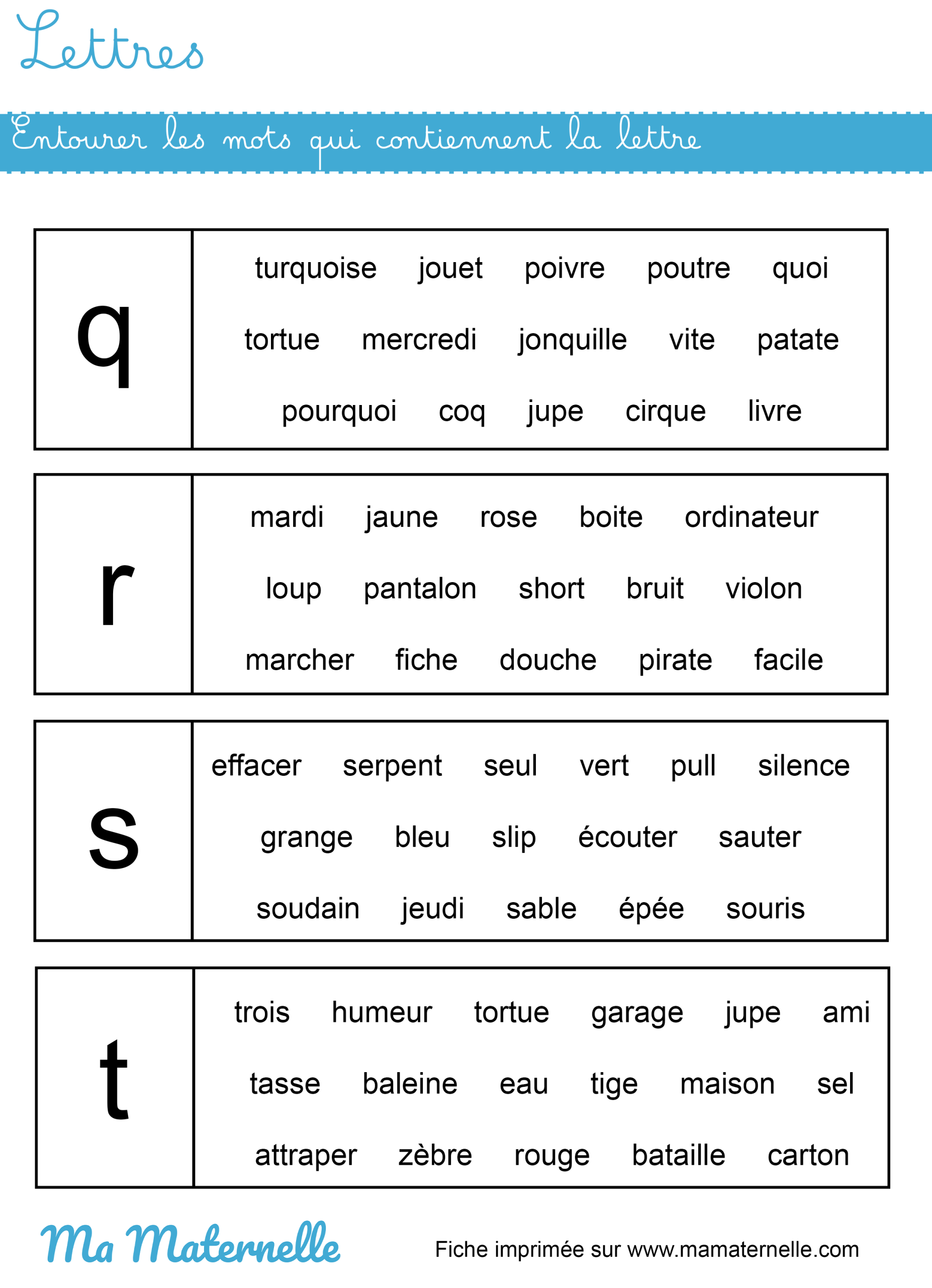 En petite section, ce sont les lettres capitales qui sont utilisées, les petits élèves découvrent leurs formes et finissent par les associer aux sons. En moyenne section, ce sont les lettres scripts qui font leur apparition jusqu’en grande section. Ce n’est qu’à la fin de cette dernière année que certains professeurs démarrent avec les lettres cursives en minuscules.
