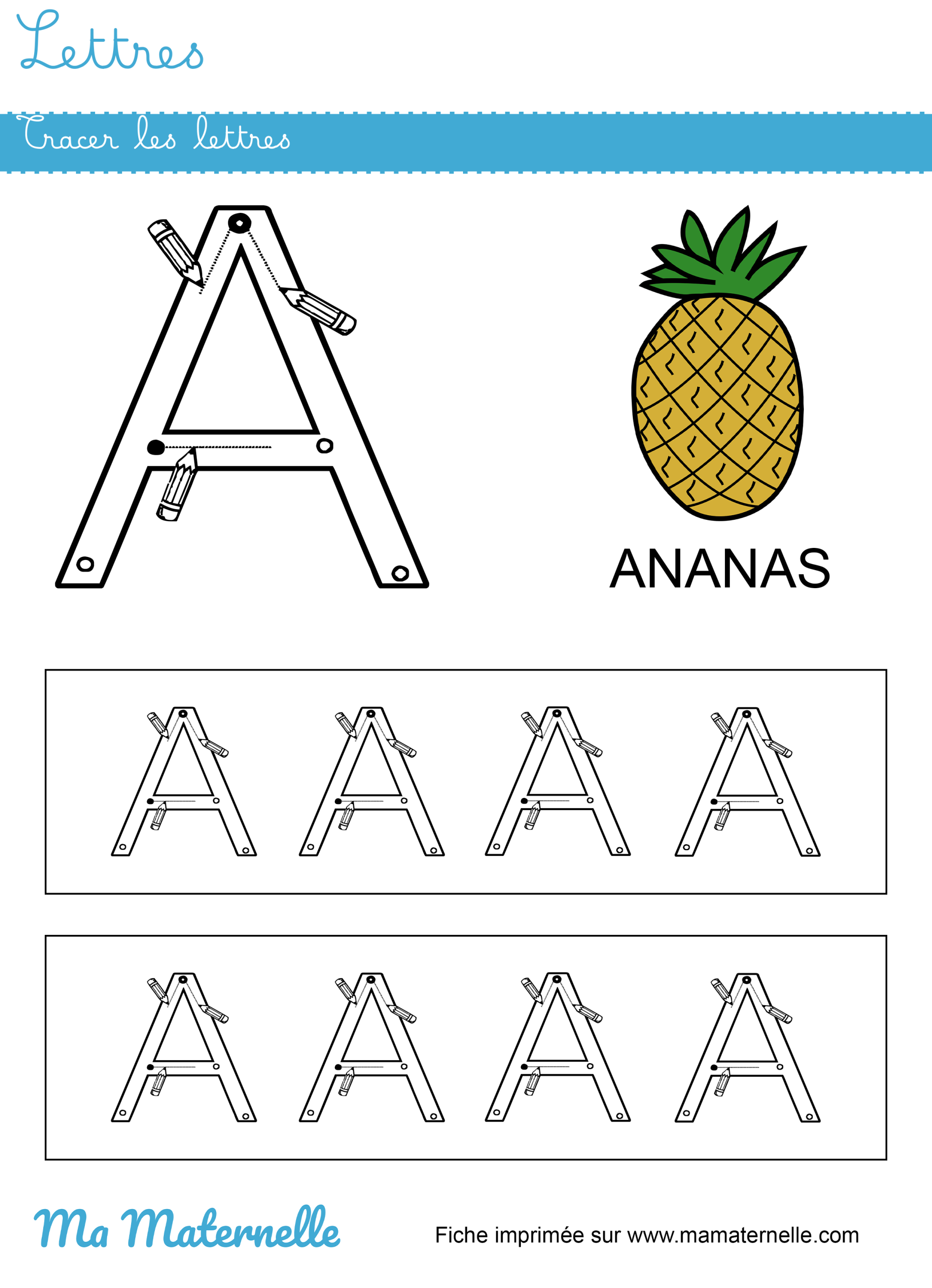 Plusieurs types d’exercices sont proposés : la reconnaissance des lettres, l’écriture, repasser sur des lettres ou des mots, faire correspondre différentes écritures… Vous pouvez également proposer à votre enfant de faire les lettres en pâte à modeler, ou avec son doigt dans du sable, en fabriquant un livret avec des lettres rugueuses. Ainsi votre enfant découvre l’alphabet tout en s’amusant.