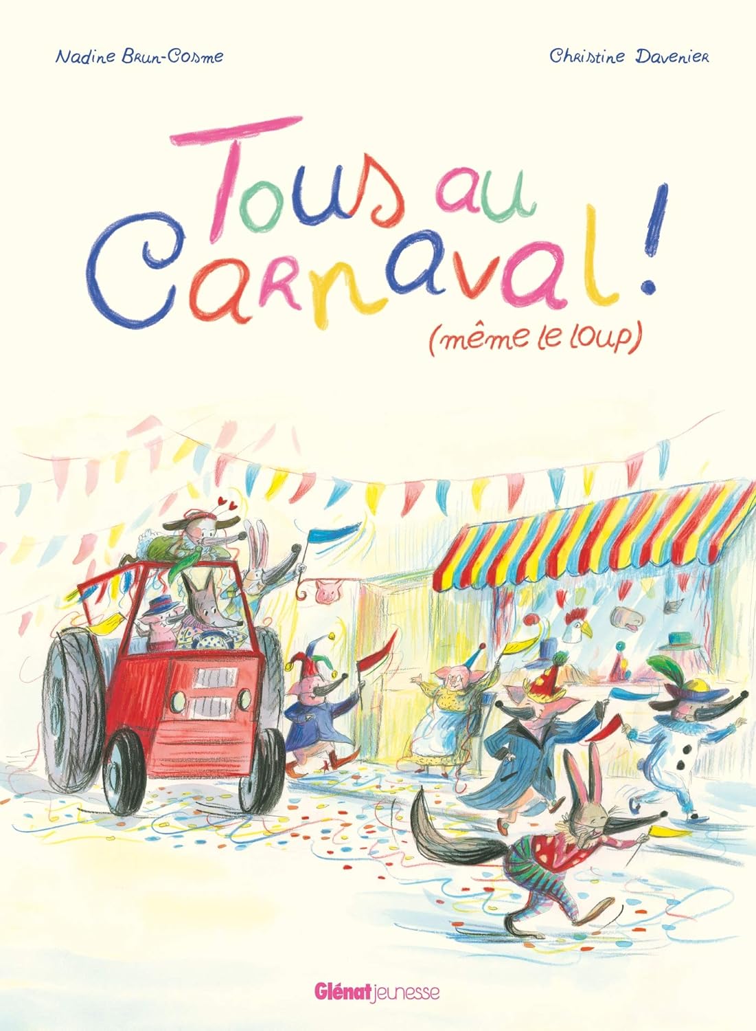 « Tous au carnaval ! (même le loup) » raconte l’histoire d’un village provençal animé par la tradition du carnaval. L’arrivée d’un loup au costume impressionnant captive les animaux du village, qui acceptent de travailler pour lui en échange de costumes similaires. Le travail acharné éclipse leur joie jusqu’à une intervention astucieuse de Léon, le propriétaire du magasin de costumes. Une chute collective dans une mare rappelle aux villageois le véritable sens de la joie et de la communauté, délivrant un message sur l’importance de se souvenir de ce qui rend vraiment heureux au-delà des apparences et du matérialisme.
