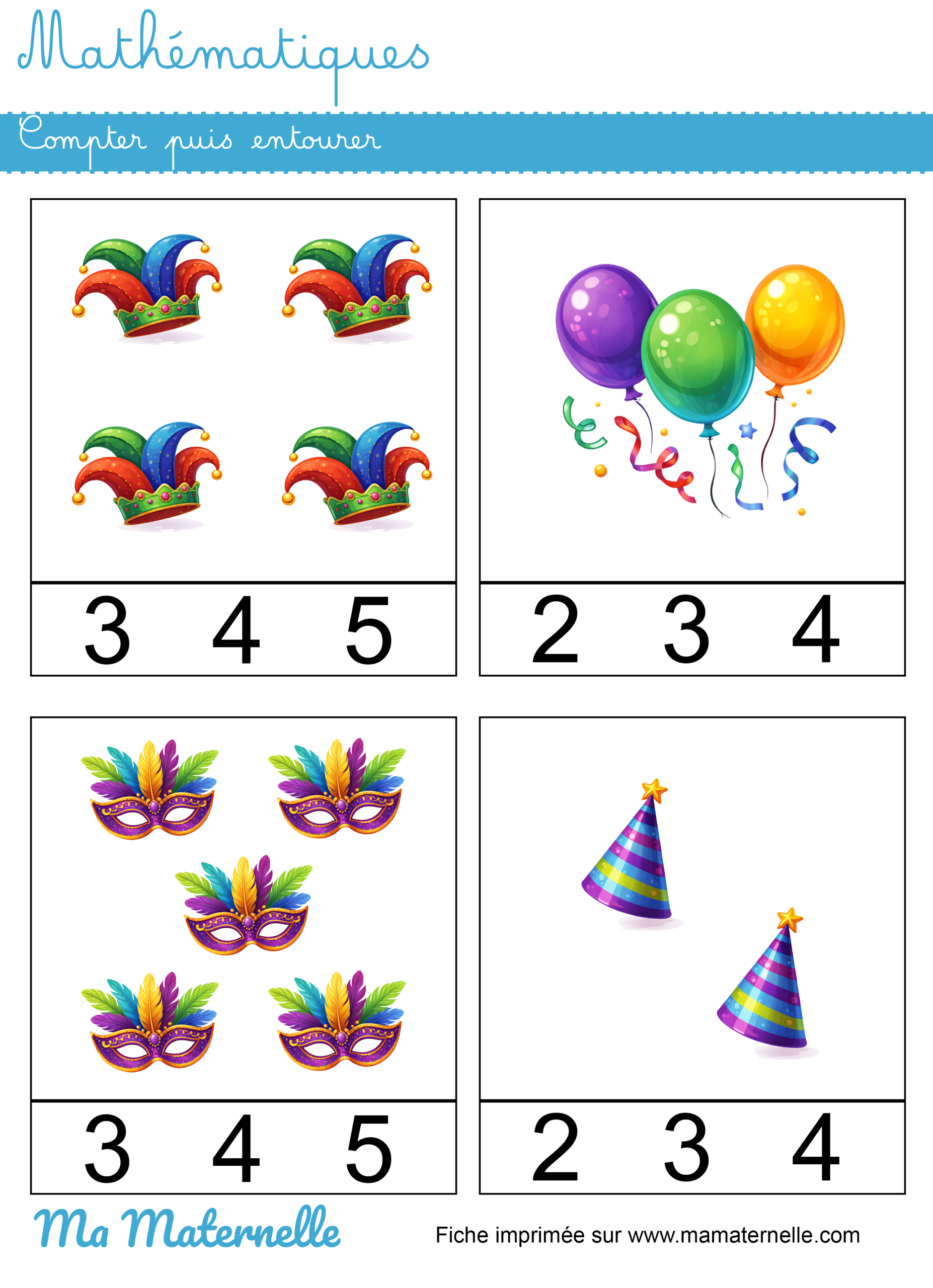 Nos exercices de maternelle sur le carnaval