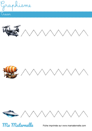 Le graphisme est également important en grande section en particulier pour l’apprentissage de la symétrie. Les formes proposées seront quant à elles plus variées et complexes. Cela incitera l’enfant à développer ses compétences en découpage et surlignage. Il sera alors demandé de continuer des motifs décoratifs en respectant les lignes ainsi que les figures géométriques (triangle, cercle, rectangle, carré, …) ou encore de créer un dessin en repassant sur des traits.