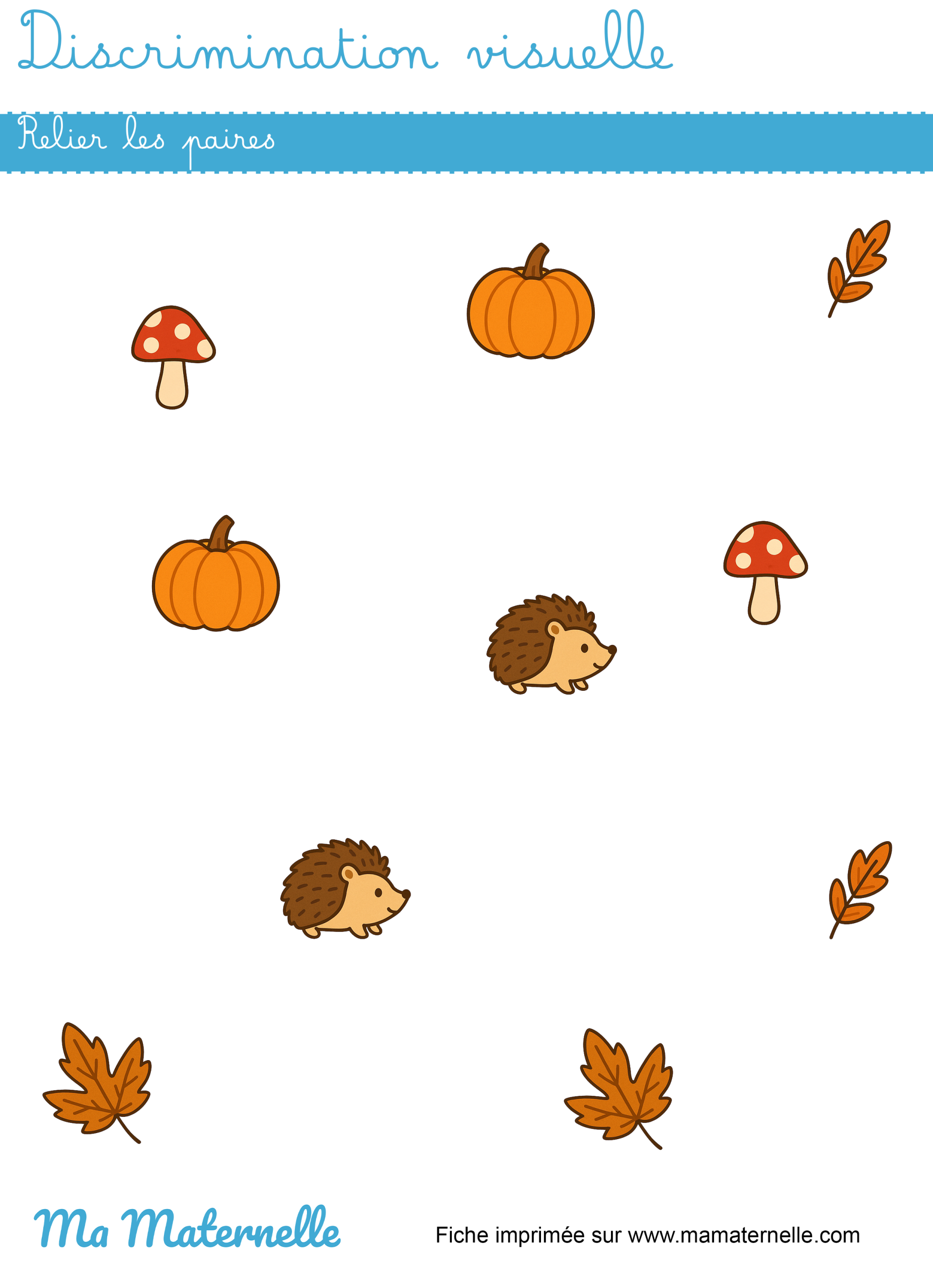 Discrimination visuelle : relier les paires Par JulieLe 7 octobre 2025Dans Discrimination visuelle grande section, Grande sectionLaisser un commentaire sur Discrimination visuelle : relier les paires Relier les paires sur le thème de l’automne. ↓ Télécharger le fichier Partager : 📎 Fiches similaires : Graphisme : travailler la symétrie Mathématiques : observer et compter Mathématiques : dessiner des cils Chiffres : compter et écrire le bon chiffre