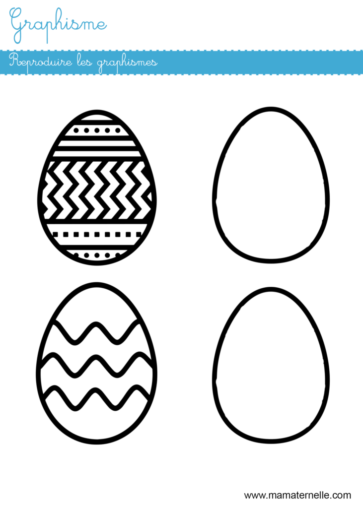 Graphisme : reproduire les graphismes Par JulieLe 17 avril 2022Dans Grande section, Graphisme grande sectionLaisser un commentaire sur Graphisme : reproduire les graphismes Reproduire les graphismes des oeufs de pâques. ↓ Télécharger le fichier Partager : 📎 Fiches similaires : Lettres : colorier les lettres Lettres : Poinçonner le mot Lettres : poinçonner le mot Lettres : poinçonner le mot
