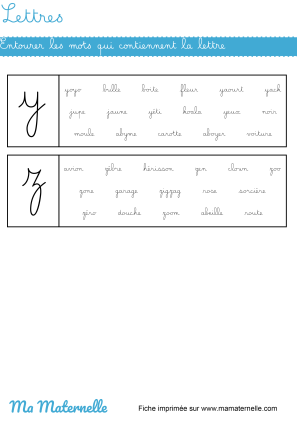 Une fois de plus, les lettres cursives sont dans un premier temps abordées via le prénom de l’enfant. Ainsi, il pourra s’approprier une part de cet apprentissage. Par la suite, on pourra reprendre les exercices de l’année passée en introduisant cette nouvelle forme d’écriture. Le but étant d’effectuer une comparaison avec les lettres majuscules et minuscules, déjà maîtrisées. On pourra alors proposer à l’enfant de retrouver un mot parmi d’autres, de colorier les lettres qui composent un mot, de faire correspondre un mot avec son équivalent dans un autre style d’écriture, etc…