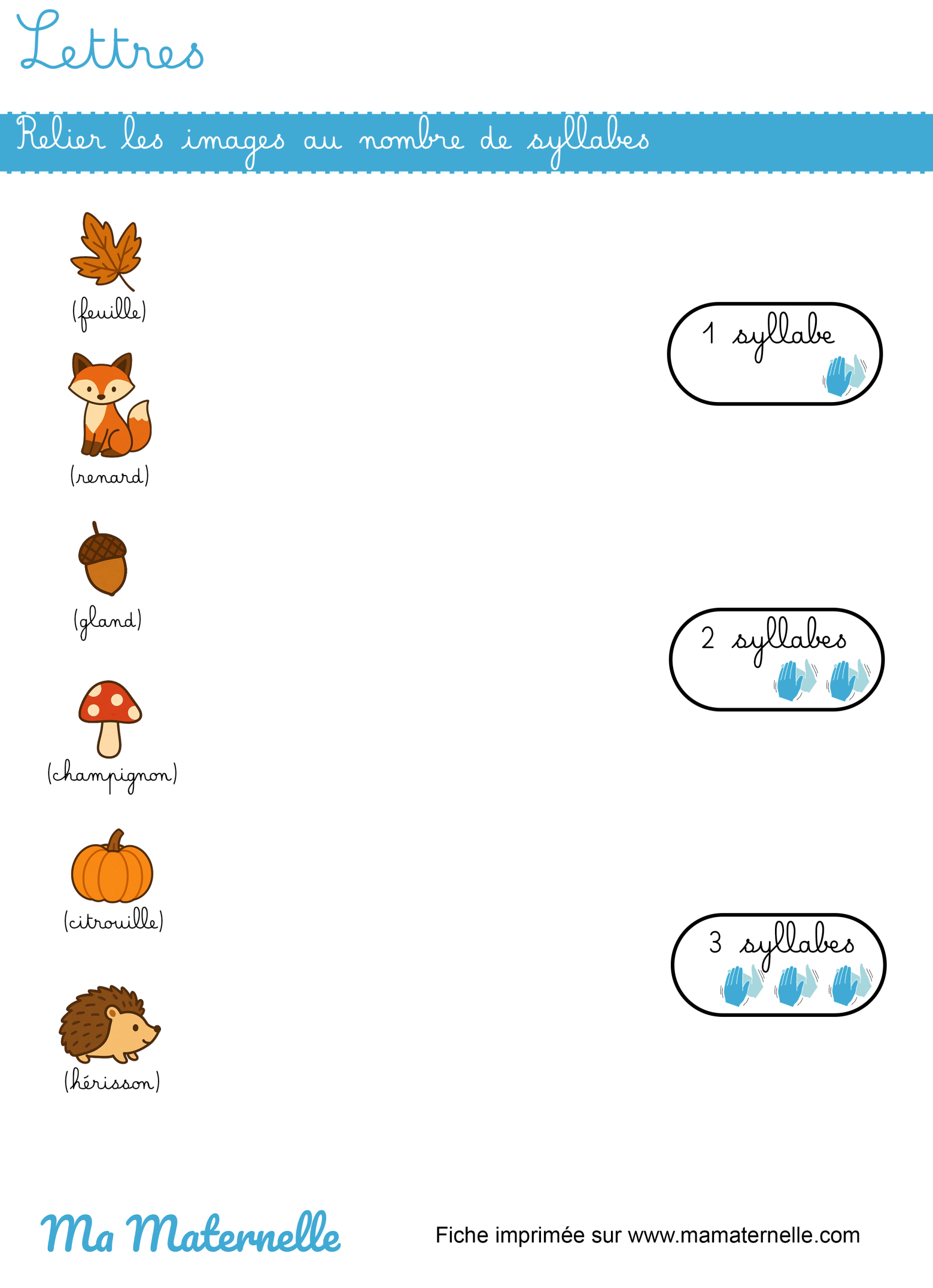 Relier les images, sur le thème de l’automne, au nombre de syllabes.