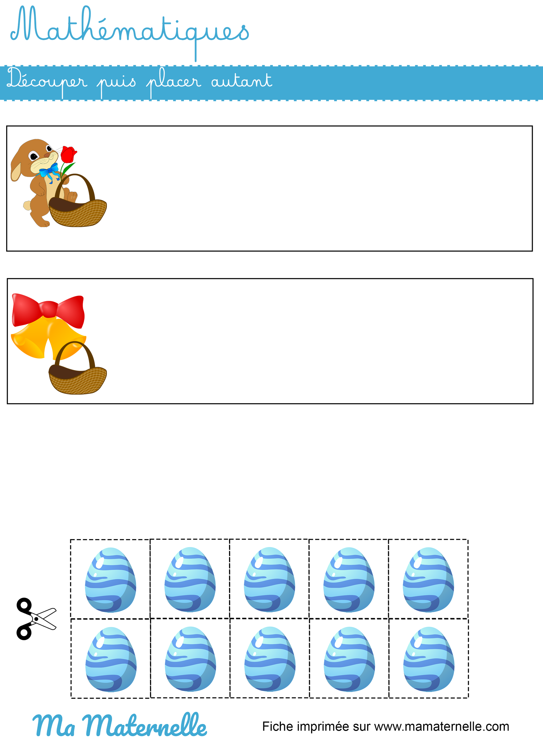 Découper puis placer autant d’oeufs de pâques pour le lapin et les cloches.