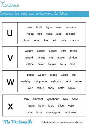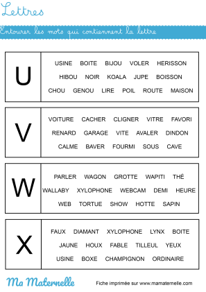 - Lettres : renforcer l’écriture, associer les lettres ensemble et commencer à varier les types d’écriture.