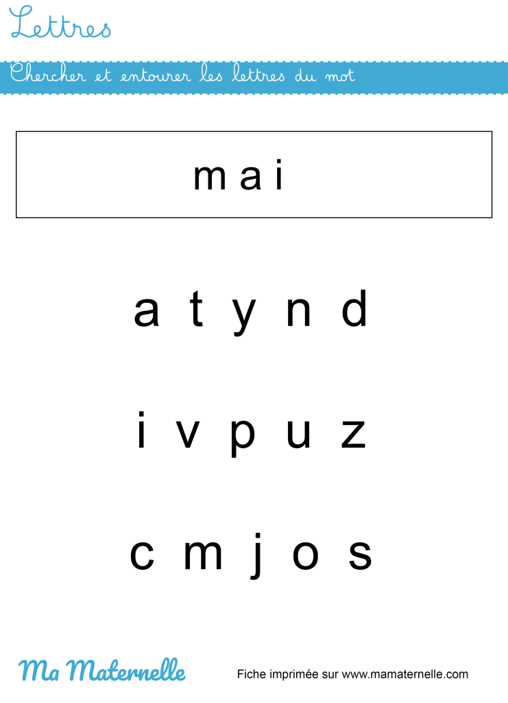 Lettres : chercher et entourer les lettres du mot Par JulieLe 26 avril 2025Dans Lettres moyenne section, Moyenne sectionLaisser un commentaire sur Lettres : chercher et entourer les lettres du mot Chercher et entourer les lettres du mot. ↓ Télécharger le fichier Partager : 📎 Fiches similaires : Lettres : écrire les mots Lettres : chercher et entourer les lettres du mot Lettres : chercher et entourer les lettres du mot Mathématiques : montrer « peu » et « beaucoup »