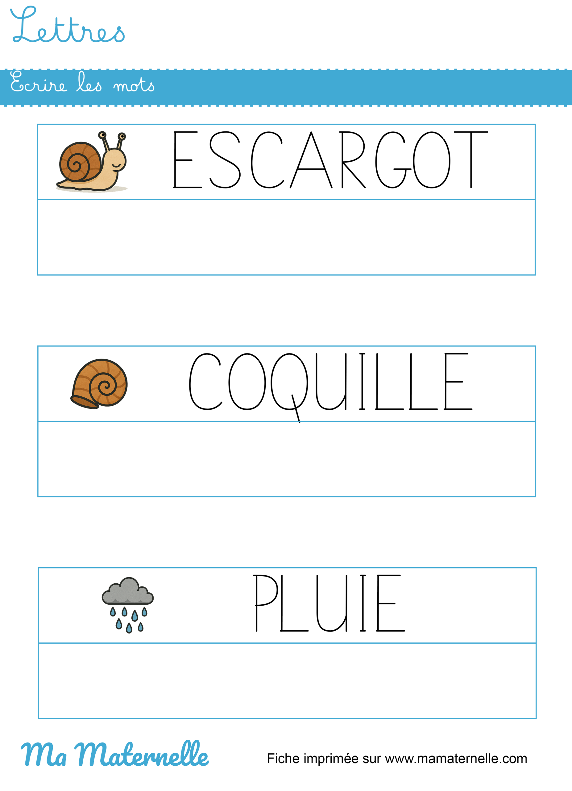 Lettres : écrire les mots Par JulieLe 9 novembre 2025Dans Lettres moyenne section, Moyenne sectionLaisser un commentaire sur Lettres : écrire les mots Écrire les mots sur le thème de l’escargot. ↓ Télécharger le fichier Partager : 📎 Fiches similaires : Lettres : écrire les mots Lettres : écrire les mots Lettres : repasser sur les lettres pour former des mots Lettres : repasser sur les lettres pour former des mots