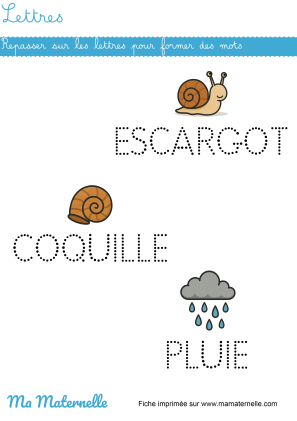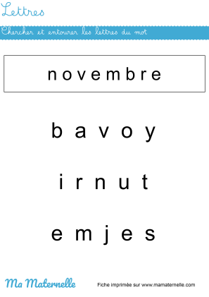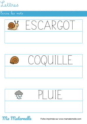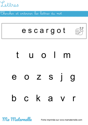 Le jeune élève peut ainsi s’exercer à recopier des mots lettre par lettre. Dans un premier temps on choisira des mots courts puis on pourra corser la difficulté selon le rythme de l’enfant. Il est également intéressant de proposer de chercher un mot au milieu d’autres mots afin qu’il exerce son œil à la reconnaissance d’un ensemble de lettres.