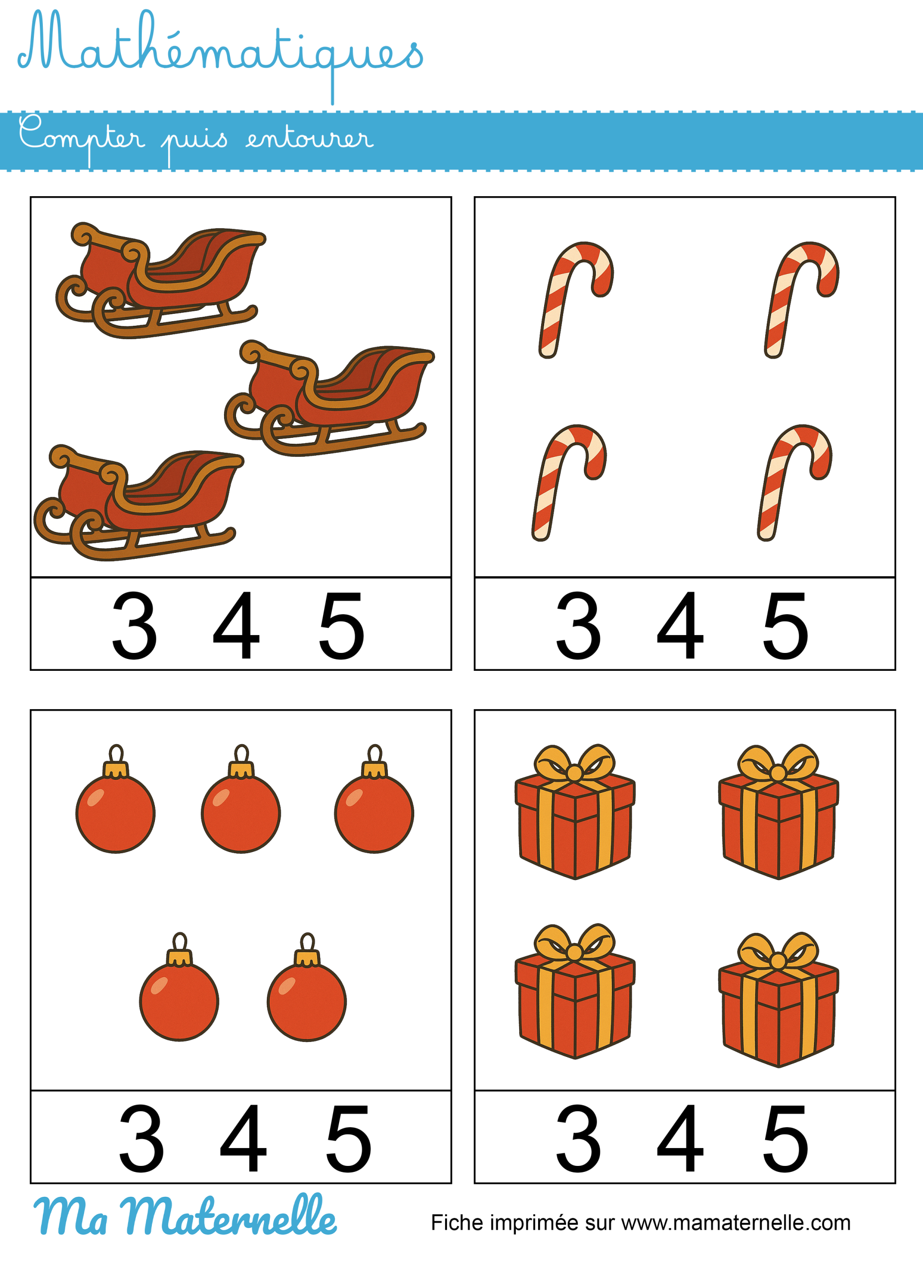 Objectifs : observer et dénombrer, reconnaître les chiffres 3, 4 et 5. Faire le lien entre le symbole et la quantité.