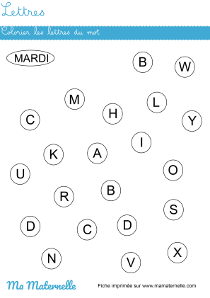 En petite section, les enfants découvrent l’écrit. On peut commencer par se familiariser avec les lettres en en cachant une que l’enfant doit trouver parmi d’autres lettres intruses. Avant de commencer à écrire on pourra proposer un travail autour des mots. Il s’agira cette fois-ci de proposer un mot puis de découper les lettres afin que l’enfant reconnaisse et colle la lettre au bon endroit dans le but de former le mot complet. Accompagner l’exercice par une image le rendra plus attrayant.