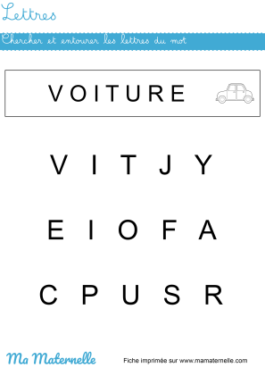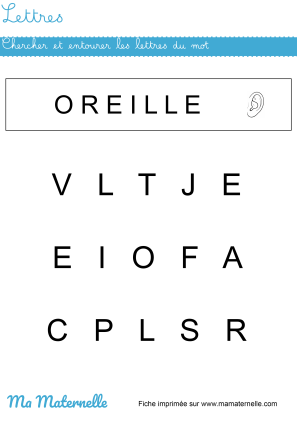 C’est principalement autour de la reconnaissance de chaque lettre qu’il faut travailler cette année. Par exemple, on peut montrer à l’enfant une lettre et lui demander de la retrouver au milieu d’autres. On peut également écrire un mot court et lui proposer de le reconstituer avec des lettres découpées préalablement. S’il est demandeur, il pourra même essayer de les écrire par lui même. Vous trouverez ce type d’exercice sur notre site.