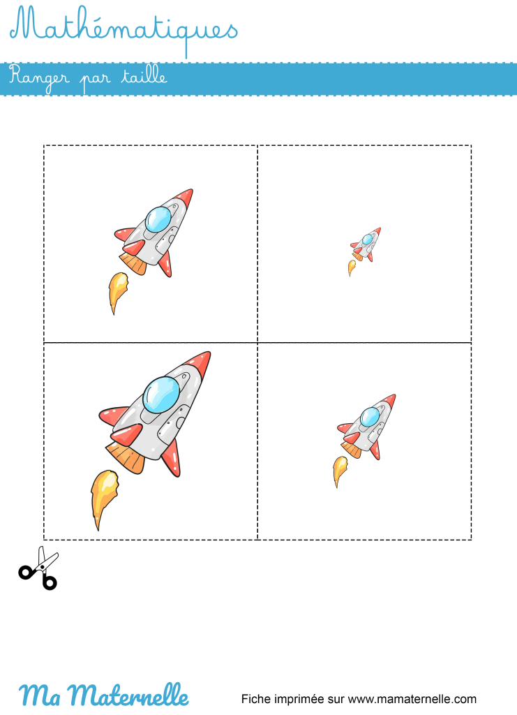 Mathématiques : ranger par taille Par JulieLe 21 mai 2024Dans Chiffres petite section, Petite sectionLaisser un commentaire sur Mathématiques : ranger par taille Ranger du plus grand au plus petit, ou inversement. ↓ Télécharger le fichier Partager : 📎 Fiches similaires : Mathématiques : ranger par taille Mathématiques : ranger par taille Découpage : lignes horizontales Lettres : nommer puis associer